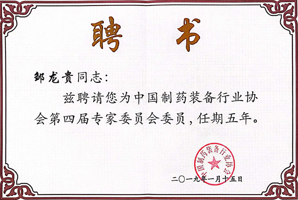 制藥裝備協(xié)會(huì)專(zhuān)家委員聘書(shū)